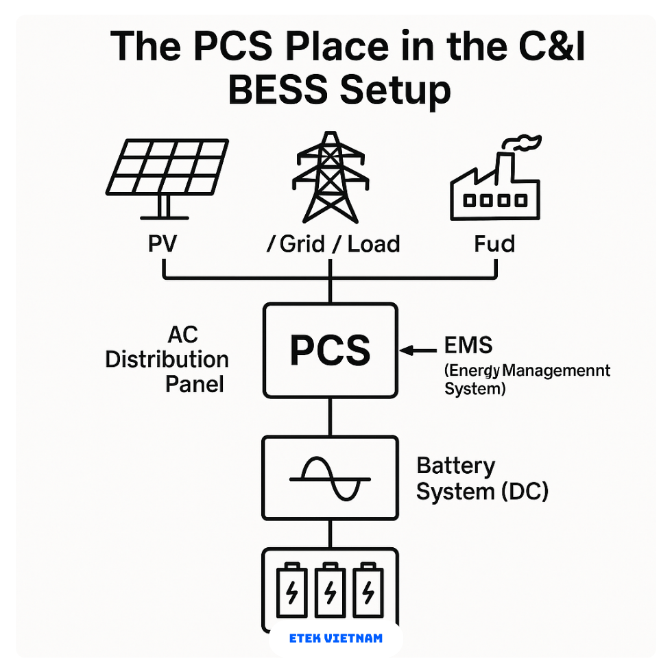 Trong bối cảnh EMS công nghiệp, BESS không chỉ là thiết bị lưu trữ mà còn là tài nguyên điều tiết năng lượng. EMS đồng bộ lịch sản xuất với trạng thái pin, giúp giảm tiêu thụ giờ cao điểm và nâng cao hiệu quả sử dụng điện.